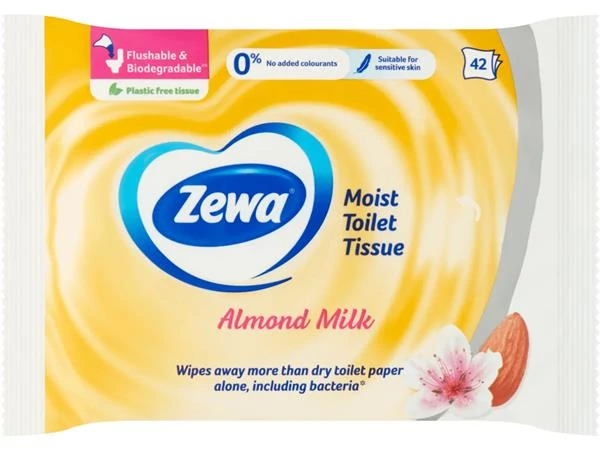 A Zewa Mandulatej nedves toalettpapír gyengéd és kényeztető gondoskodást nyújt, kiemelkedő tisztaságérzet mellett. •Bőrsemleges pH-értékű •Természetes mandulaolajjal •B5-provitaminnal •Toaletten lehúzható és biológiailag lebomló •Bőrgyógyászatilag tesztelt •Optimális nedvesség, ami tisztít, de nem hagy nedvességérzetet